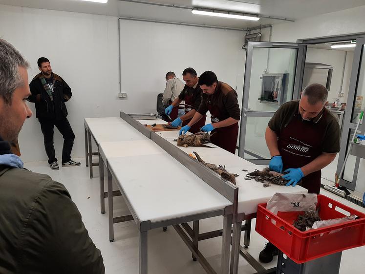 Après un café d’accueil, direction le sous-sol du siège de la fédération, où un laboratoire agréé permet de réceptionner, dépecer, découper et cuisiner du gibier, à la manière d’un professionnel. La formation existe depuis maintenant cinq ans, explique Emmanuel Lavoisier, directeur de la FDC 80. «Et à chaque fois, c’est un succès !» Cet atelier est complémentaire à la formation «Hygiène et traitement de la venaison», proposée sur une journée.