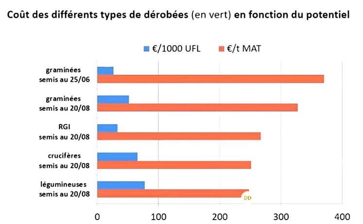 Enfin, le coût de ces dérobées estivales dépend des variétés semées. Les graminées restent les moins onéreuses.