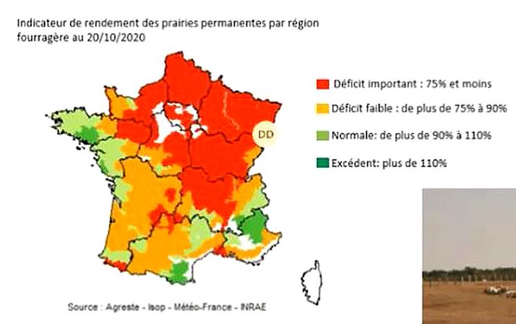 «Si l’on regarde l’évolution des températures estivales et le déficit hydrique sur ces dernières années, on constate que ces situations d’étés chauds et secs se succèdent et s’accentuent. Il en résulte un déficit de production des prairies qui touche trois quarts des régions françaises», annonce d’emblée Didier Deleau, ingénieur régionale fourrages Arvalis.