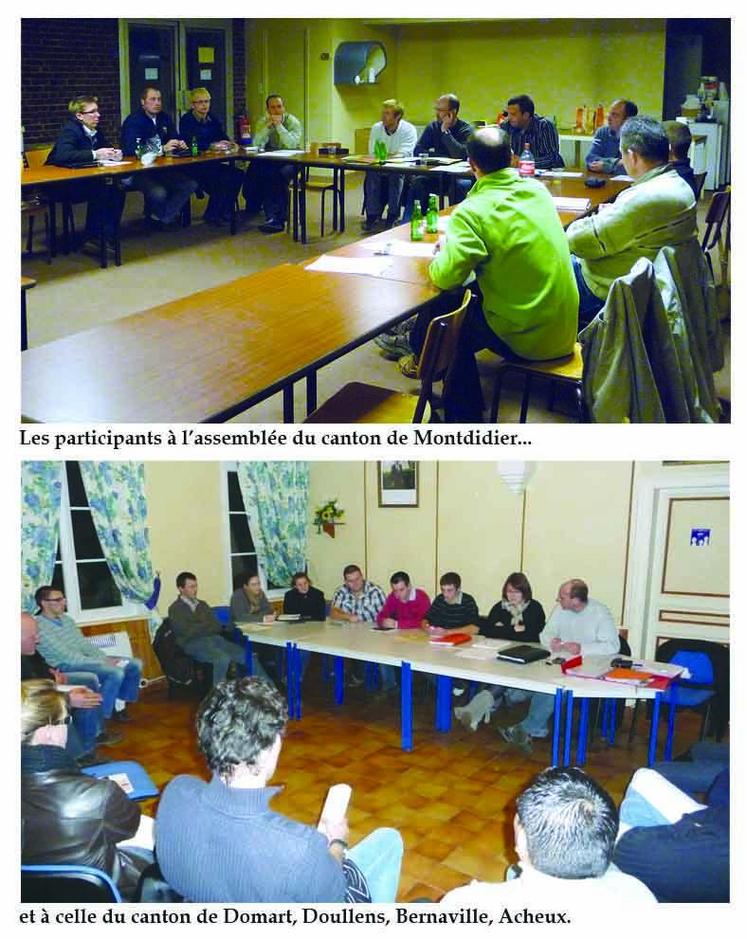 Dans le canton de Montdidier, les participants ont mis l’accent sur l’organisation de la Plaine en Fête 2013. A l’assemblée d’Ault, Saint Valéry-sur-Somme, Gamaches, les échanges ont porté sur l’organisation de la prochaine journée installation du 14 mars 2013.