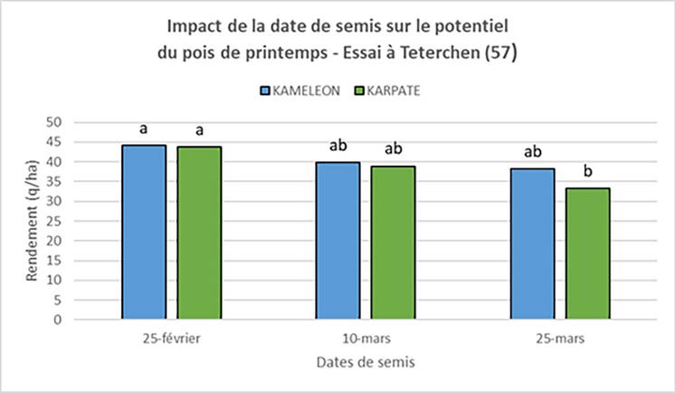 Les pratiques des producteurs de pois de printemps enquêtés en 2017 et 2020 montrent aussi une tendance à de meilleurs rendements pour les semis de fin février. À noter que la même tendance ressort des enquêtes de féverole de printemps.