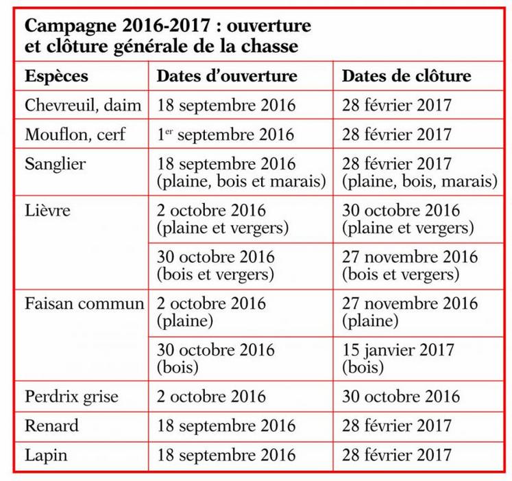 18 septembre pour le gros gibier, un report a été demandé pour le lièvre, la perdrix grise et le faisan commun au 2 octobre.