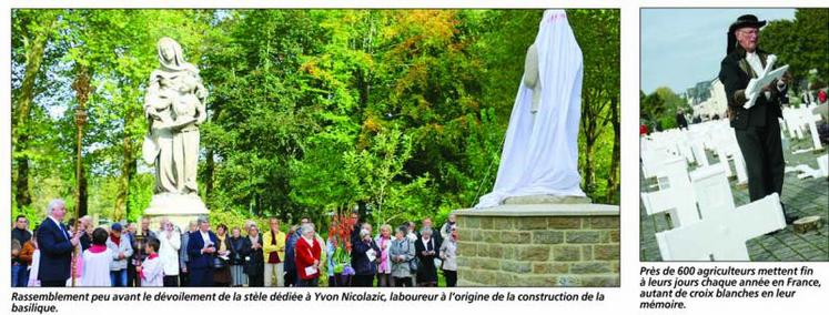 Thierry François explique sa présence par sa sensibilité profonde au devenir des âmes. Un aspect qu’il considère ne pas être assez souligné lors de la célébration des obsèques religieuses. La messe à la basilique, dont le parvis était jalonné de 600 croix blanches pour figurer les 600 vies d’agriculteurs, qui se sont arrêtées dans l’année, brutalement, par désespoir. Thierry François a été conforté dans ses convictions par les propos de Mgr Centène, évêque de Vannes, au cours de l’homélie de la messe d’ouverture de cette journée de pèlerinage qu’il présidait. «Si un suicide, et toute mort quelle qu’en soit la cause, est toujours un drame parce qu’avec elle c’est un univers qui disparaît, le suicide d’un paysan revêt un caractère particulier parce qu’il touche à une lourde symbolique. Celui qui a la charge de la vie des plantes et des bêtes, celui qui, par vocation, contribue à la vie de ses frères en humanité en leur fournissant la nourriture nécessaire au maintien et à la croissance de la vie, celui-là, en est venu à détester sa propre vie jusqu’à décider d’y mettre lui-même un terme en se donnant la mort. Nous sentons bien qu’il y a là une dimension contre-nature qui vient ajouter encore à notre désarroi : celui-là même à qui Dieu a confié la charge de la création, fait œuvre de destruction sur lui-même.». Et de poursuivre avec une dimension plus spirituelle au lien entre le paysan et la terre : «Si le paysan est plus vulnérable que les autres aux aléas parfois mortifères de la vie économique de nos sociétés, c’est parce que le lien qui l’unit à son outil de production : la terre, est un lien sacré… Parce que le lien qui unit le paysan à sa terre est un lien sacré, parce qu’il nous dit quelque chose de la noblesse de l’homme, le paysan veut vivre de son travail. C’est l’honneur de l’homme de vivre de son travail et pas de subventions, de primes et de délais de paiements qui lui font perdre sa fierté.»