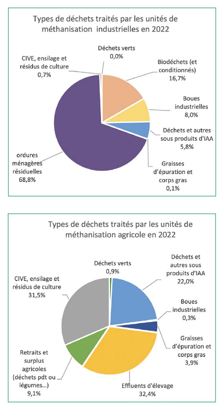 Au total, environ 280 900 tonnes d’intrants y ont été traitées en 2022. Quelques gros sites mis en service en cours d’année n’étaient pas encore à pleine charge ; aussi la capacité de traitement est plutôt d’environ 440 000 tonnes (dont 65 à 70 % par des unités agricoles).