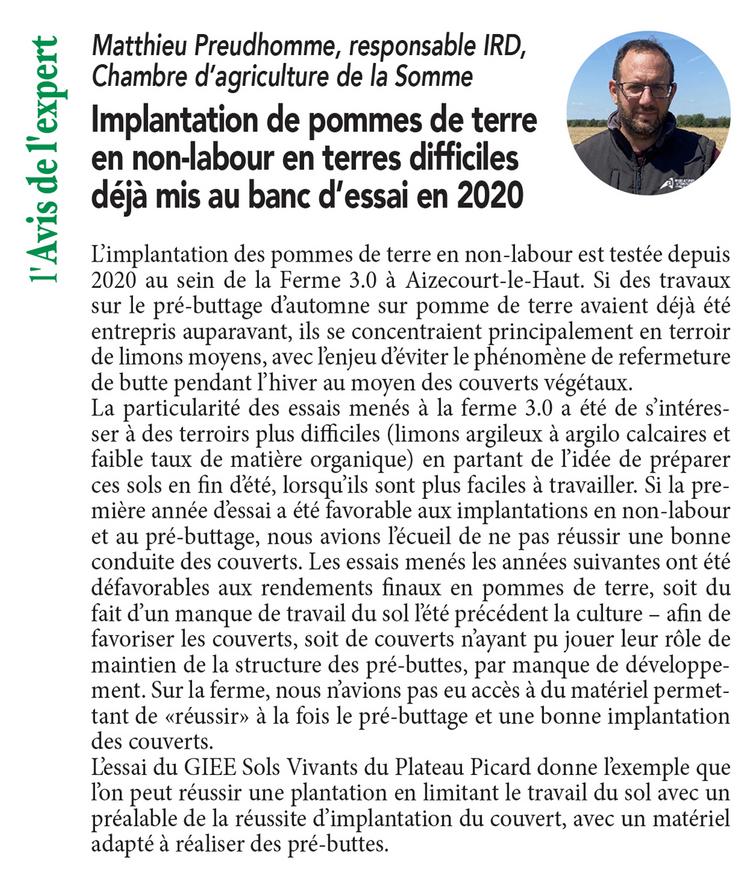 • Giee Sols Vivants du Santerre travaille sur les systèmes pommes de terre avec implantation d'intercultures