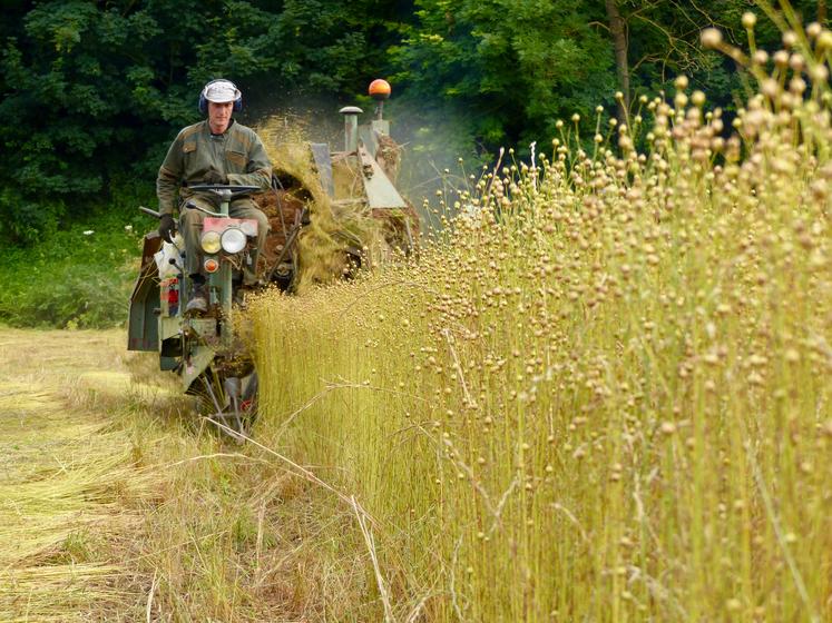 Comme les moissonneuses, les arracheuses de lin ont débuté leurs travaux estivaux. Difficile d’estimer la qualité des fibres aujourd’hui, mais la quantité devrait être plus importante qu’en 2020.