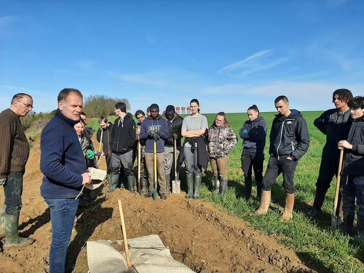 Compte tenu des conditions météo des derniers mois, le chantier a dû être reporté à deux reprises. Le fait d’associer des étudiants à l’opération ? «C’est toujours intéressant, constate M. Desmis. Ils sont demandeurs et cela permet d’échanger.» Président de la société de chasse locale, Christophe Desmis voit également dans la plantation de haies un effet positif pour la petite faune sauvage. Le jour du chantier de plantation, il n’y avait donc rien de surprenant à ce que quelques sociétaires soient venus prêter main forte. À l’heure de la pause méridienne, l’agriculteur a profité de la rencontre avec les étudiants et leurs professeurs pour rappeler toutes les démarches entreprises «depuis une trentaine d’années» pour améliorer l’impact environnemental de sa ferme : «Il y a tout un tas de choses que l’on fait et qui ne se voient pas… La gestion de l’azote, l’utilisation des outils d’aide à la décision…», détaillait-il. Avec la plantation de haies sur son exploitation, «c’est encore une autre initiative, mais celle-là, elle a le mérite de se voir», expliquait l’exploitant. Et d’espérer que d’autres lui emboîteront le pas. La prochaine tranche du projet qui l’intéresse devrait porter sur le secteur de Rosières-en-Santerre/Vauvillers, dans un secteur plus urbanisé.