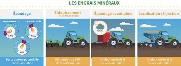Les degrés de volatilisation diffèrent selon la forme d’azote minérale utilisée passant de 1,9 %
