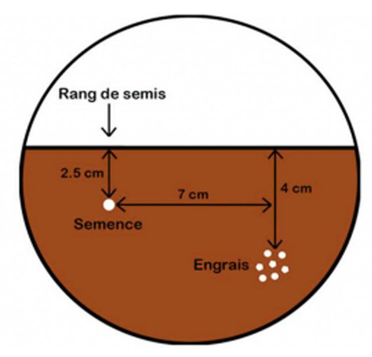 Le positionnement optimal de l’engrais doit être décalé de 7 cm de la ligne de semis et enfoui 2 cm