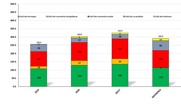 Ce qui fait 7,5 kg/ jour, soit pour 180 jours un besoin 1,350 t de distribué en trop à 420 €/t, c’est 560 €