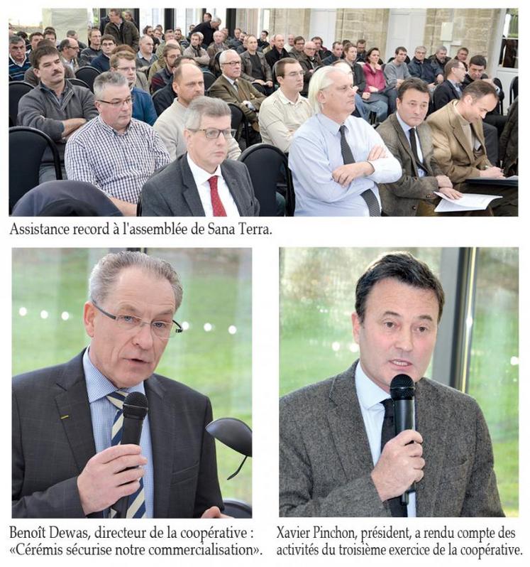 Pour la première fois depuis la fusion entre la coopérative de Villers-Bocage et La Santerroise, devenue Sana Terra après la fusion avec la coopérative de Rosières, les adhérents ont été invités en assemblée générale dans le secteur nord, au château de Naours. Ce 10 décembre, ils étaient cent quatre-vingt-cinq, une assistance record, à avoir répondu à l’invitation du président, Xavier Pinchon, qui a rendu compte du résultat financier et des activités du troisième exercice de la coopérative.