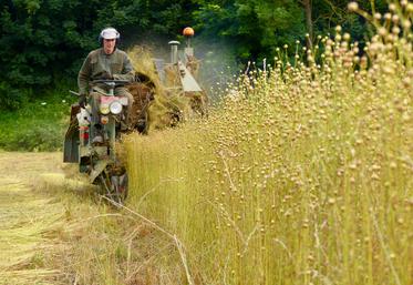 Comme les moissonneuses, les arracheuses de lin ont débuté leurs travaux estivaux. Difficile d’estimer la qualité des fibres…