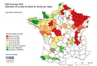 Arvalis - Institut du végétal propose la troisième carte des dates prévisionnelles de début des récoltes des maïs fourrage…