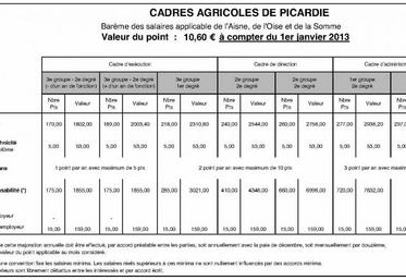 Le barème des salaires applicables aux cadres agricoles de Picardie a été réévalué.