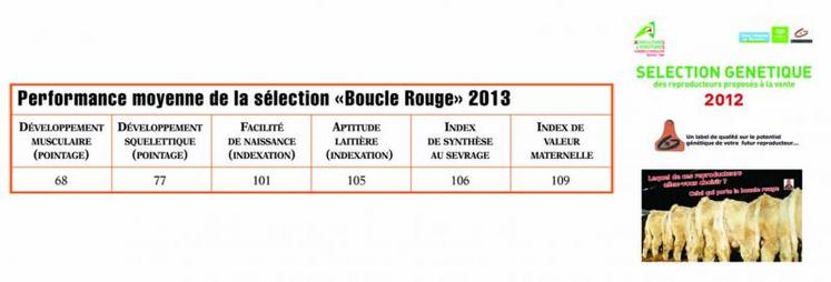 La liste 2013 des taureaux «Boucles Rouges» à vendre est sortie. C’est une exclusivité de notre département. L’objectif est de mettre en relation les acheteurs et les vendeurs. Mais nous allons beaucoup plus loin en fixant des seuils de qualité pour garantir le potentiel génétique des animaux proposés à la vente. Ce potentiel sera-t-il transmis à la descendance ? Cela est moins évident. C’est pourquoi le testage a été mis en place par les centres d’insémination. Néanmoins certains caractères ont une bonne hérédité, en particulier la viande. Pour la taille c’est un peu plus difficile mais en répétant l’utilisation de taureaux à grand développement squelettique, ce caractère marquera votre élevage. Pour les qualités maternelles : facilités de naissance, aptitude au vêlage, aptitude laitière, fertilité, l’héritabilité est faible et c’est travail à long terme.