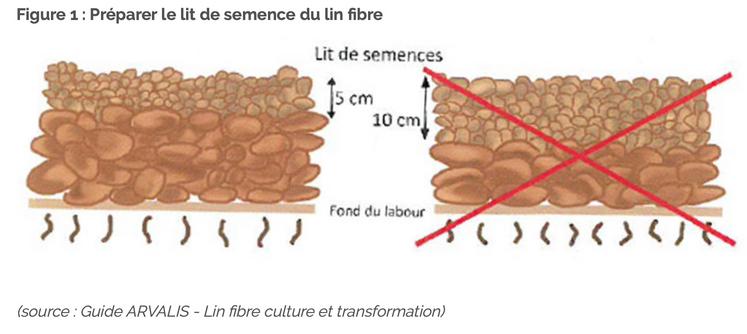 Si un semis sur le créneau fin mars/début avril est souhaitable pour limiter le risque de verse, celui-ci ne doit jamais être effectué au détriment de la structure du sol. Le lin est très sensible aux accidents de structure, particulièrement au stade jeune. Ils peuvent avoir de multiples conséquences : mauvaise qualité de l’enracinement, retard de levée, voire levées multiples et perte de pieds. Il est primordial de reprendre les sols lorsque ceux-ci sont suffisamment ressuyés et réchauffés afin d’obtenir des conditions de semis favorables à la réussite de la culture.