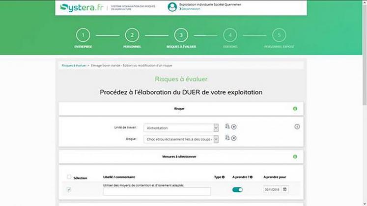 L’accès à l’outil est des plus simples : pas de programme à installer ! Il suffit d’une connexion internet pour y accéder, via un ordinateur ou une tablette. Une fois connecté, Systera propose de personnaliser le document unique au plus proche de la configuration d’une exploitation, en sélectionnant les seules activités agricoles et productions de l’agriculteur (élevages, grandes cultures, maraîchage, etc.).