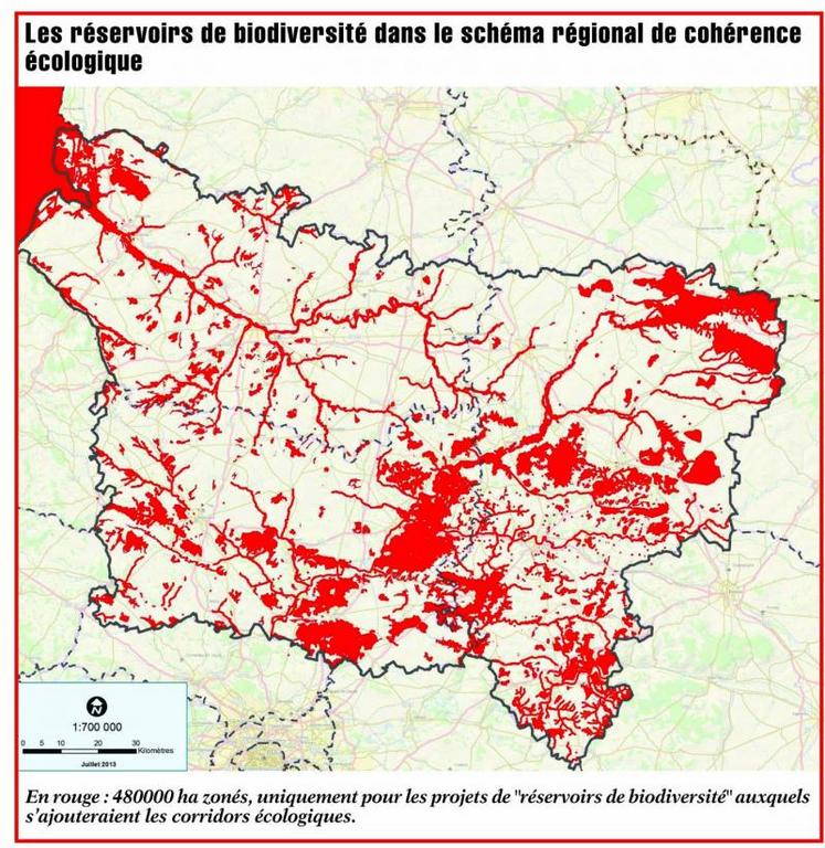 En Picardie, les trames verte et bleue sont en cours de définition dans un document appelé "schéma régional de cohérence écologique (Srce)". Ce document doit aboutir à la définition d’un zonage des "réservoirs de biodiversité" et des "corridors écologiques". Lors de l'élaboration des documents d’urbanisme (Scot, PLU), les collectivités doivent prendre en compte ce schéma, avec le risque de classer en zone naturelle protégée des territoires et ainsi de les mettre sous cloche. Par exemple, on ne pourrait plus y construire de bâtiments agricoles ou y exercer certaines activités économiques.