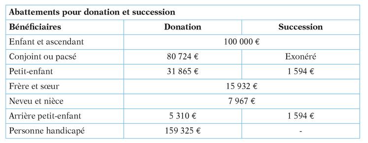 Ce dispositif s’ajoute à l’abattement de 100 000 € déjà existant pour les héritiers en ligne directe.