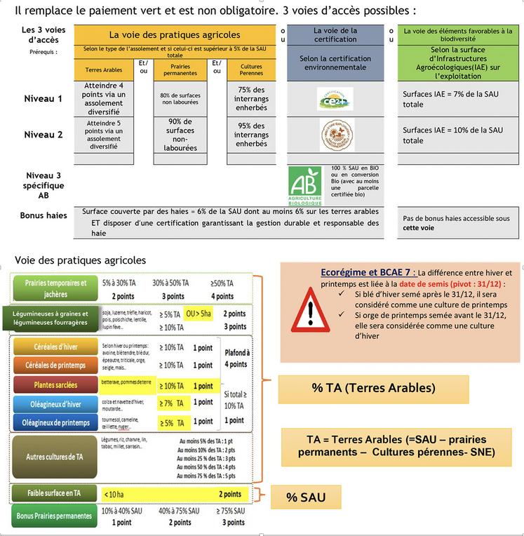 Les jachères sont des surfaces agricoles ne faisant l’objet d’aucune valorisation (ni fauche, ni pâturage) pendant une période de présence obligatoire d’au moins six mois incluant le 31 août. Par contre, il est toujours possible d’implanter ou d’utiliser les surfaces en jachère pour bénéficier de l’écorégime par la voie des pratiques (pas de coefficient appliqué aux surfaces en jachère par la voie des pratiques) ou par la voie de la biodiversité (coefficent applicable pour les jachères mellifères (1.5).