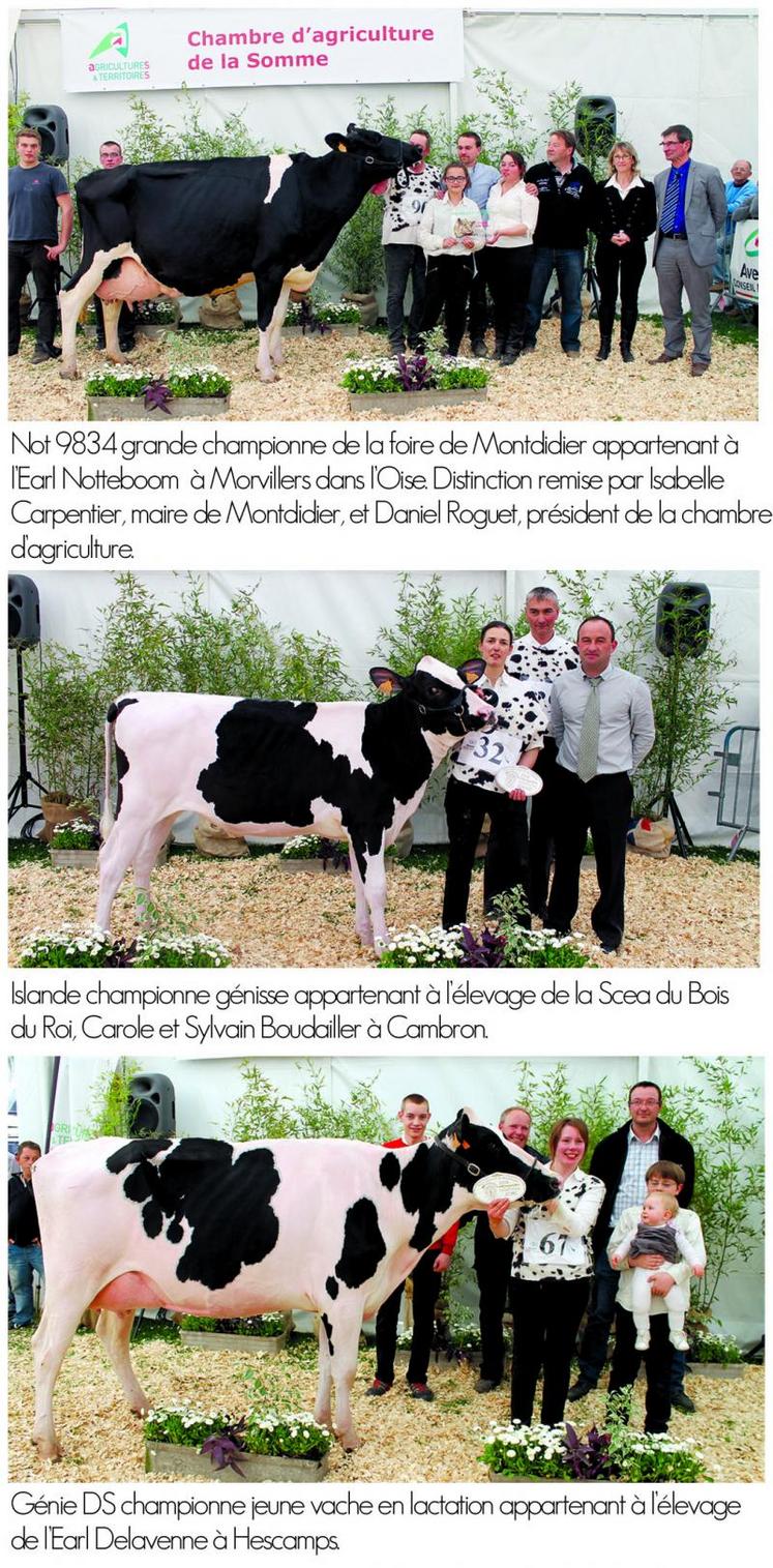 Il faut rappeler que cette manifestation ne pourrait avoir lieu sans l’investissement de la chambre d’agriculture de la Somme et de l’association Prim’Holstein 80, en collaboration avec le CIA Gènes Diffusion et Avenir Conseil Elevage, et bien entendu la ville de Montdidier qui comme chaque année a mis des moyens logistiques importants pour accueillir les éleveurs et les visiteurs dans les meilleurs conditions. Madame le maire de la ville de Montdidier, Isabelle Carpentier, Bertrand Derly et Daniel Roguet ont chaleureusement remercié l’ensemble des éleveurs et des partenaires du concours et ont donné rendez-vous à tous l’année prochaine pour l’édition 2015.