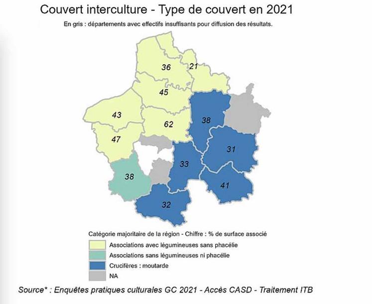Quelques interventions phytosanitaires sont également réalisées pendant cette période dans l’objectif de détruire le couvert d’interculture (5,7 % des surfaces), mais aussi pour gérer les adventices posant problème (15 % des surfaces reçoivent un herbicide non sélectif, en respectant les règles d'autorisation d'usage du glyphosate). La destruction mécanique des couverts est une pratique très généralisée.