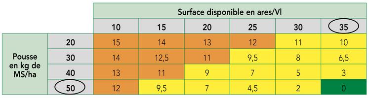 Avec une pousse de 50 kg les exploitations proposant au moins 35 ares/UGB peuvent commencer un pâturage plein sans complémentation.