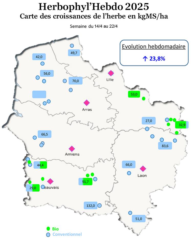 On enregistre une pousse moyenne de 61 kg par jour. Avec 50 kg sur les prairies pâturées et 85 kg pour les prairies de fauches Cette pousse permet d’adapter les complémentations à l’auge.
