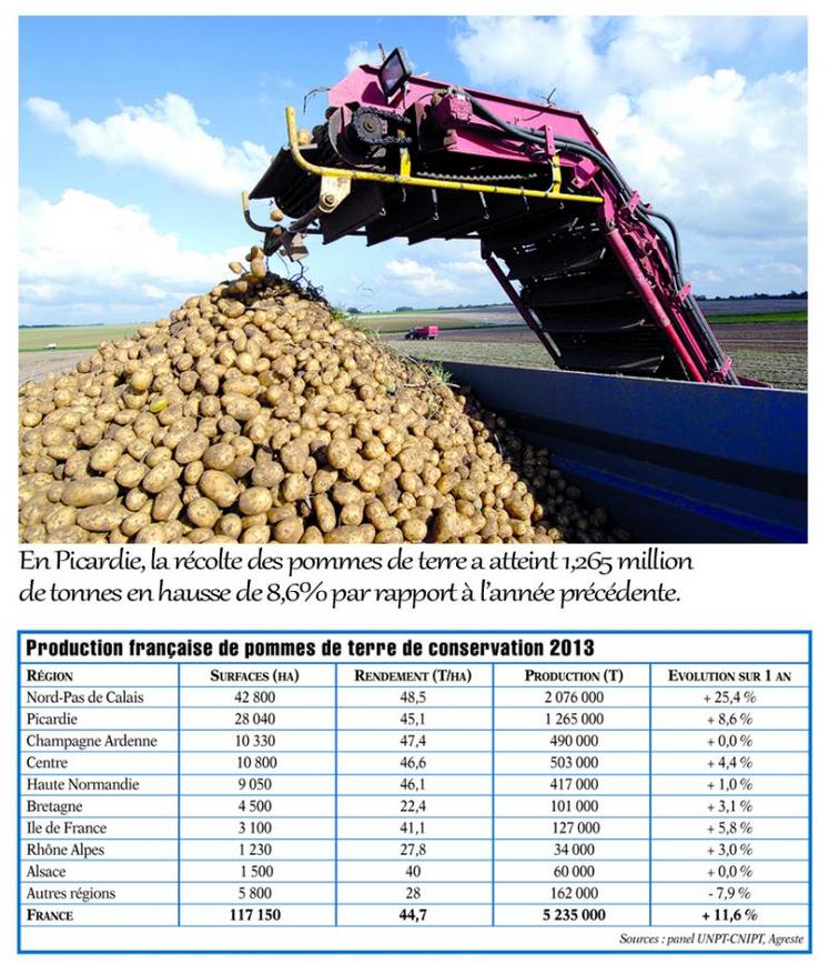 La récolte de pommes de terre 2013 s’affiche en nette progression en raison d’une augmentation des surfaces et des rendements. L’équilibre du marché ne pourra être réalisé que par l’exportation, à ce jour incertaine.