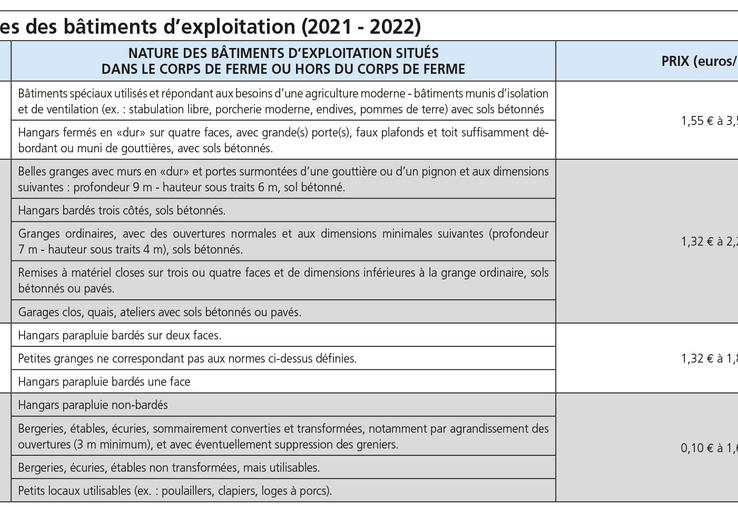 Valeurs locatives à l’hectare : le barème pour 2021-2022