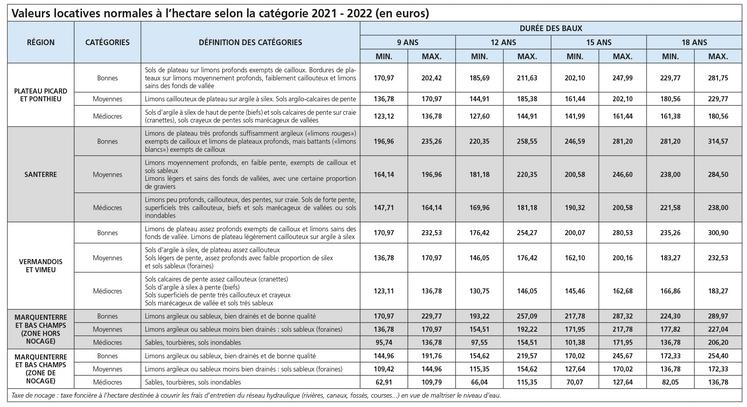Valeurs locatives à l’hectare : le barème pour 2021-2022
