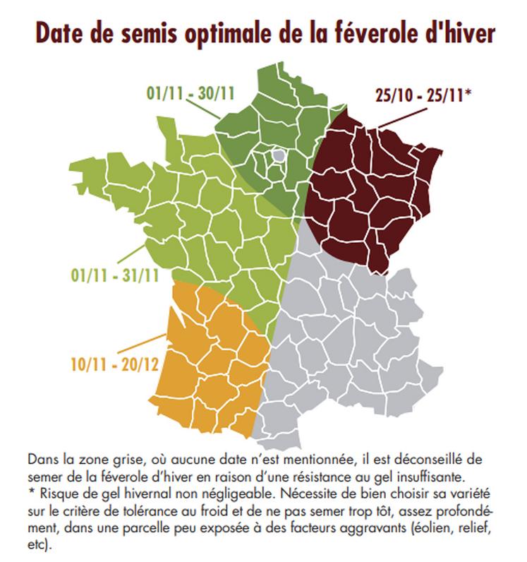 • Retarder les semis afin d’éviter d’avoir des plantes trop développées en sortie d’hiver. La tolérance au froid est maximale à 2-3 feuilles et chute drastiquement vers 6-8 feuilles. Cette stratégie de semer tard est d’autant plus importante avec des mois d’octobre et début novembre très doux, propices à la croissance excessive des protéagineux. Privilégier les semis de mi-novembre à début décembre.